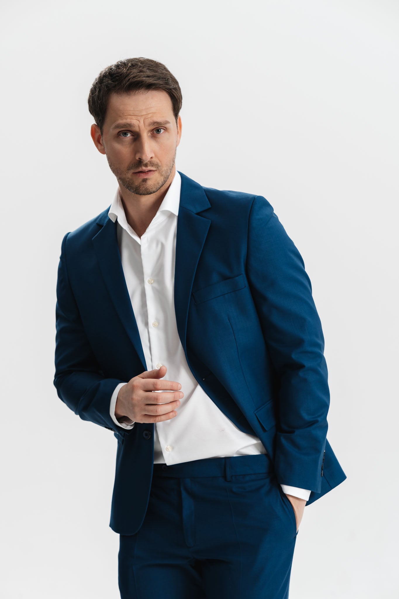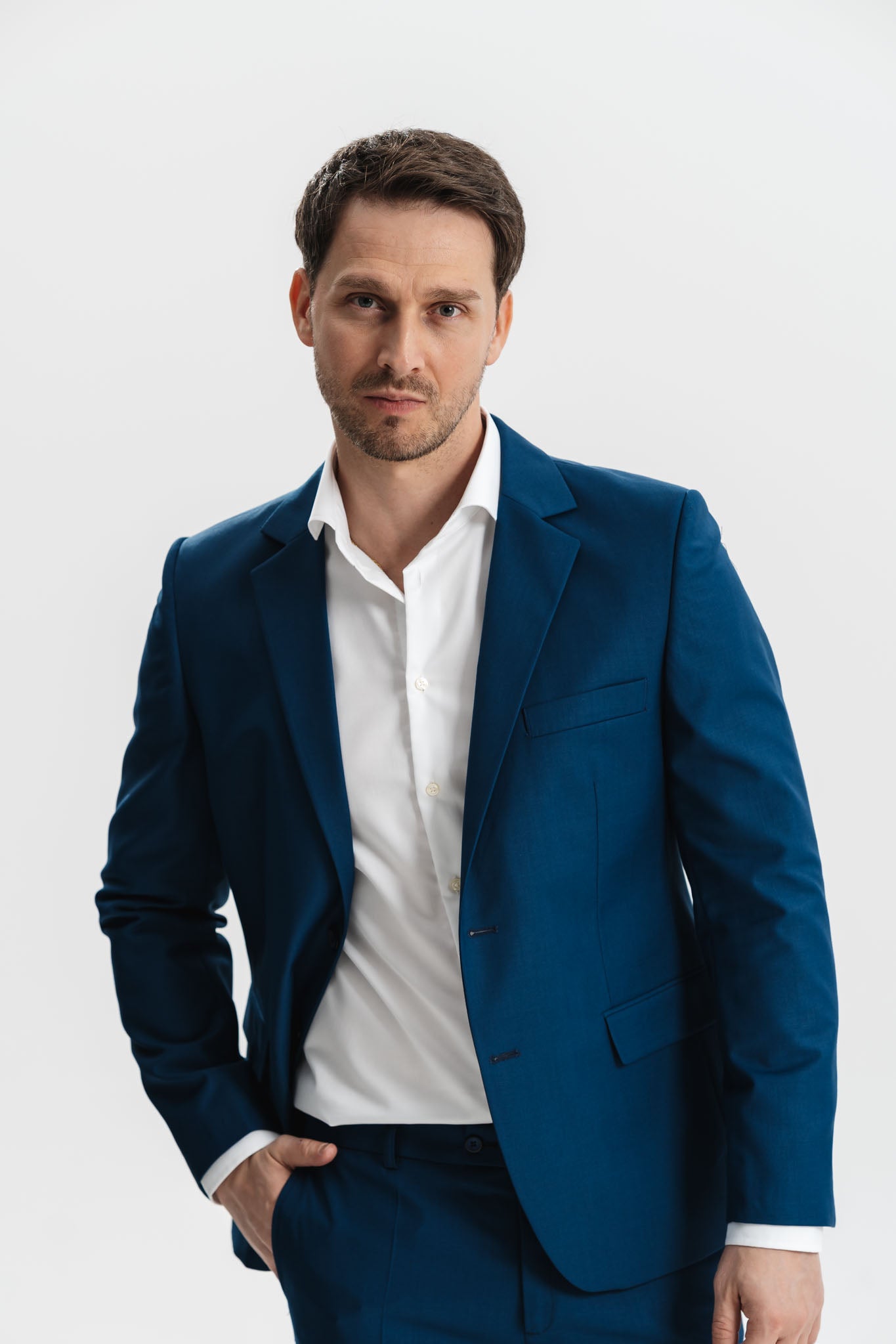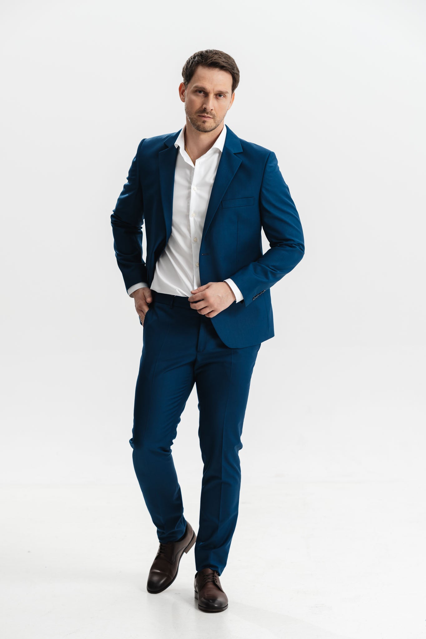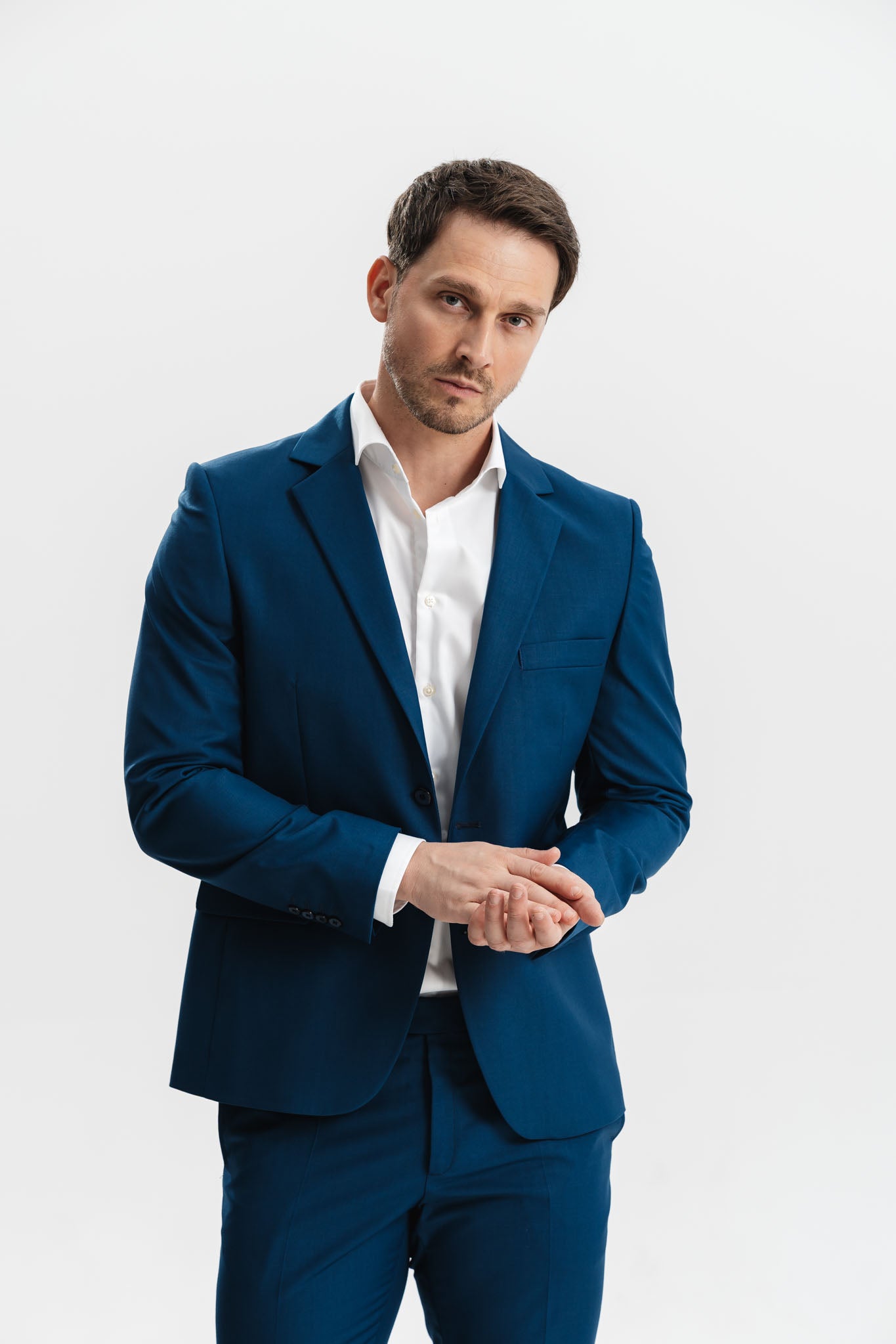 Alege sa te remarci cu acest costum albastru slim, care nu doar ca iti va completa garderoba, dar iti va si evidentia personalitatea. Bucura-te de un look impecabil!