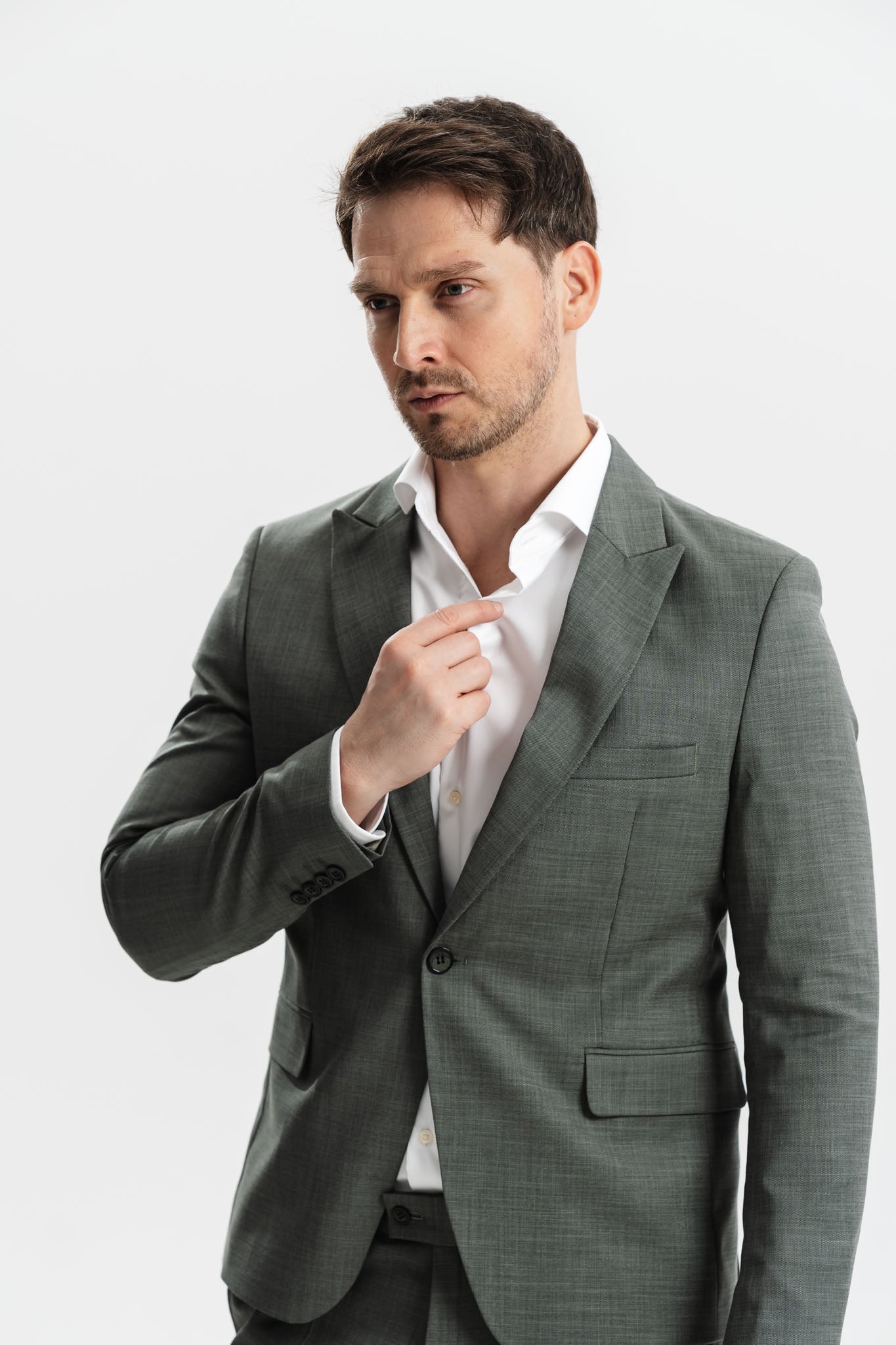 Alege sa te remarci cu acest costum verde slim, care nu doar ca iti va completa garderoba, dar iti va si evidentia personalitatea. Bucura-te de un look impecabil!