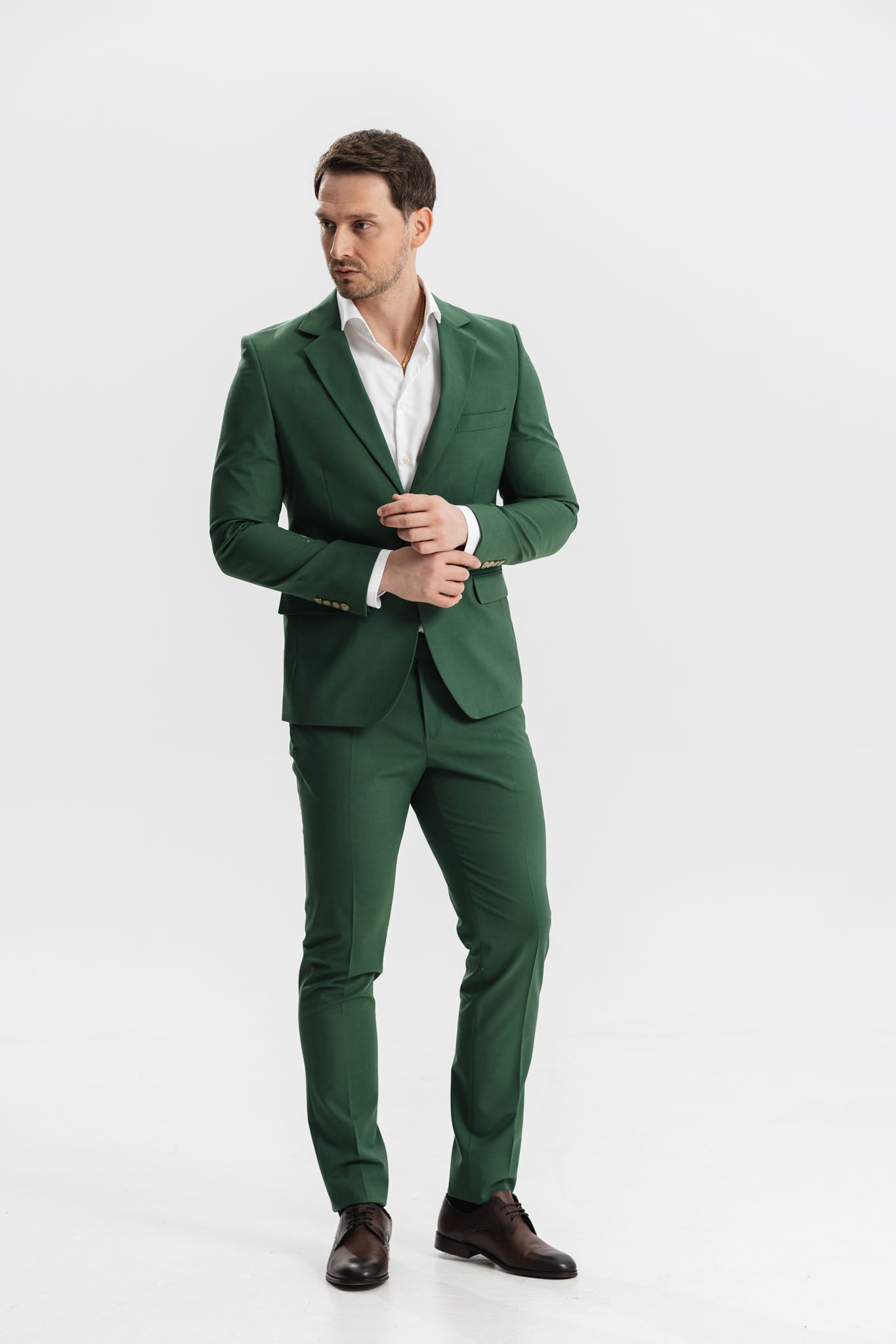Alege sa te remarci cu acest costum verde slim, care nu doar ca iti va completa garderoba, dar iti va si evidentia personalitatea. Bucura-te de un look impecabil!