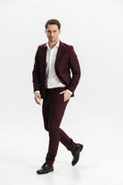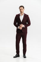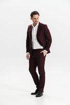 Alege sa te remarci cu acest costum visiniu slim, care nu doar ca iti va completa garderoba, dar iti va si evidentia personalitatea. Bucura-te de un look impecabil!