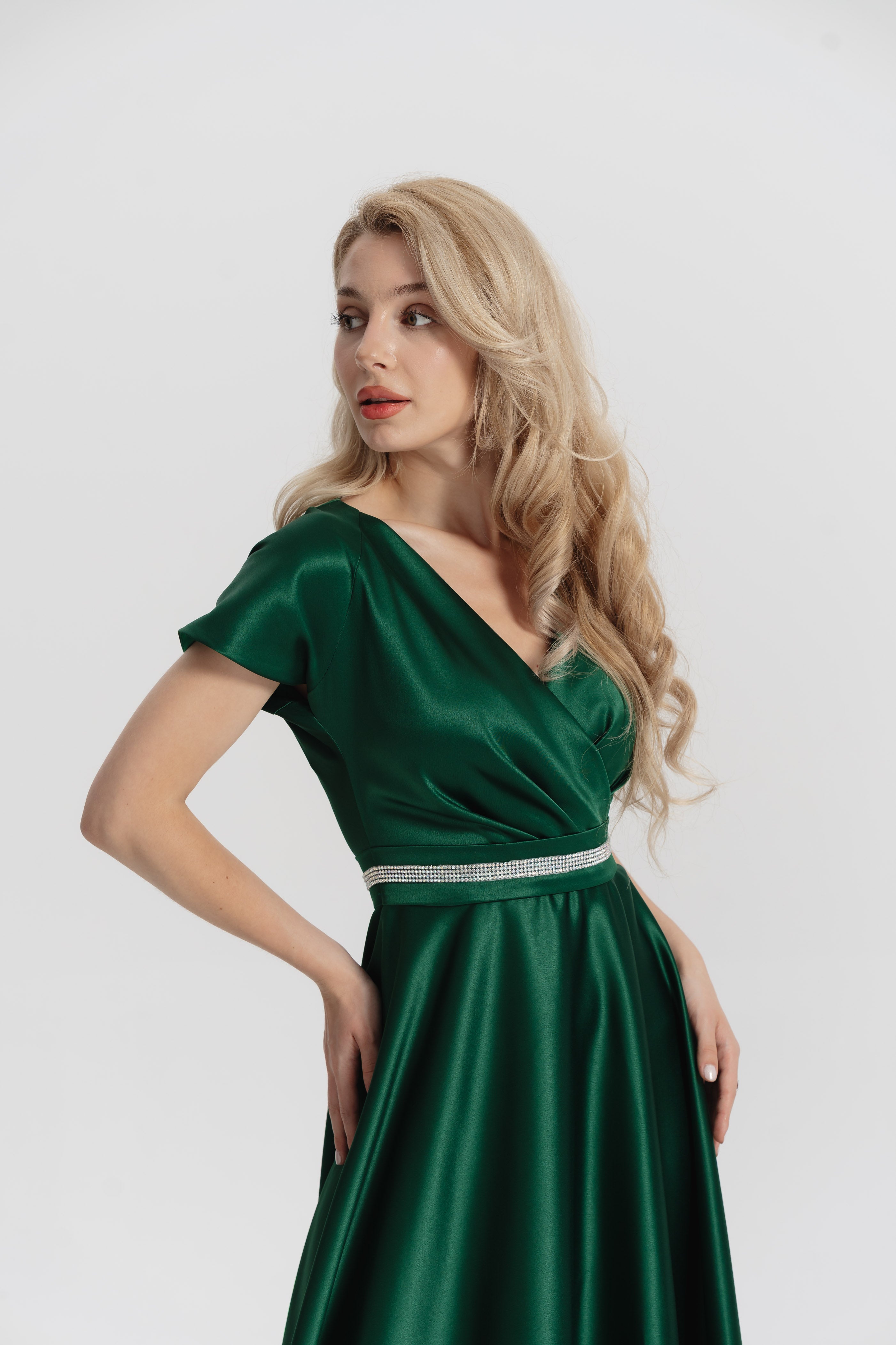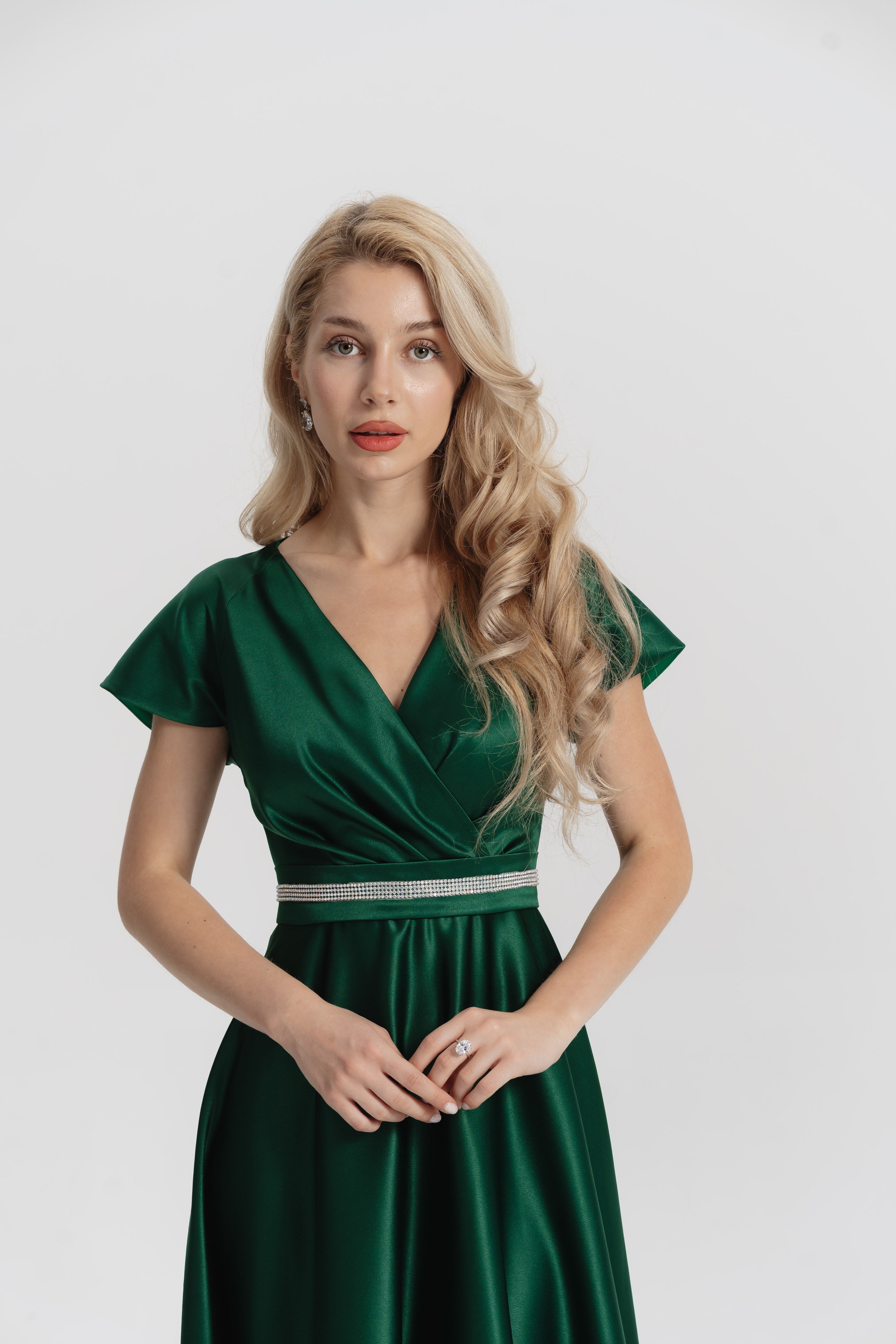 Fii cu adevarat remarcabila in aceasta rochie eleganta verde smarald, perfecta pentru evenimente deosebite precum nunti, petreceri sau gala. Aceasta rochie combina sofisticarea cu un design modern, fiind alegerea ideala pentru a atrage toate privirile.