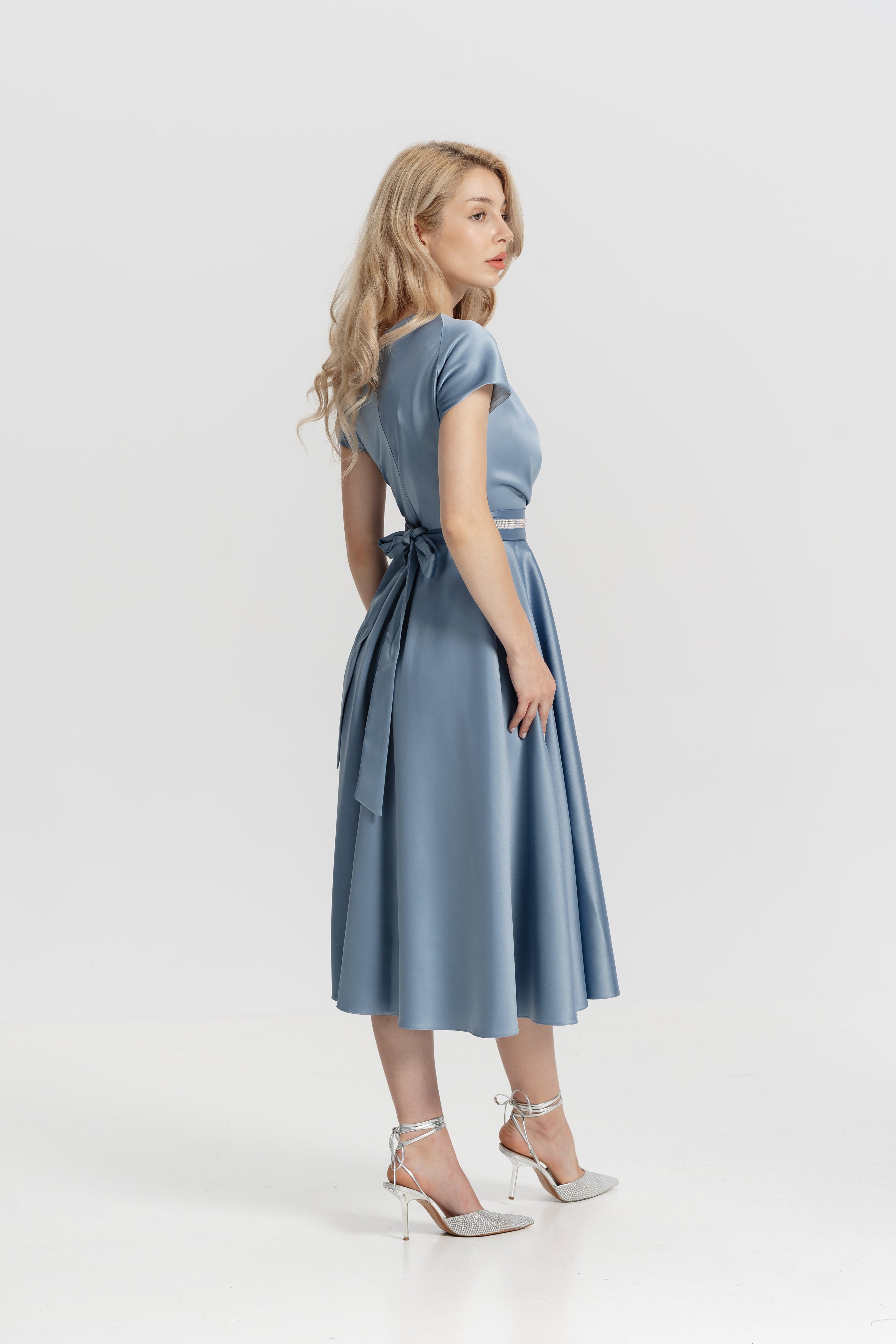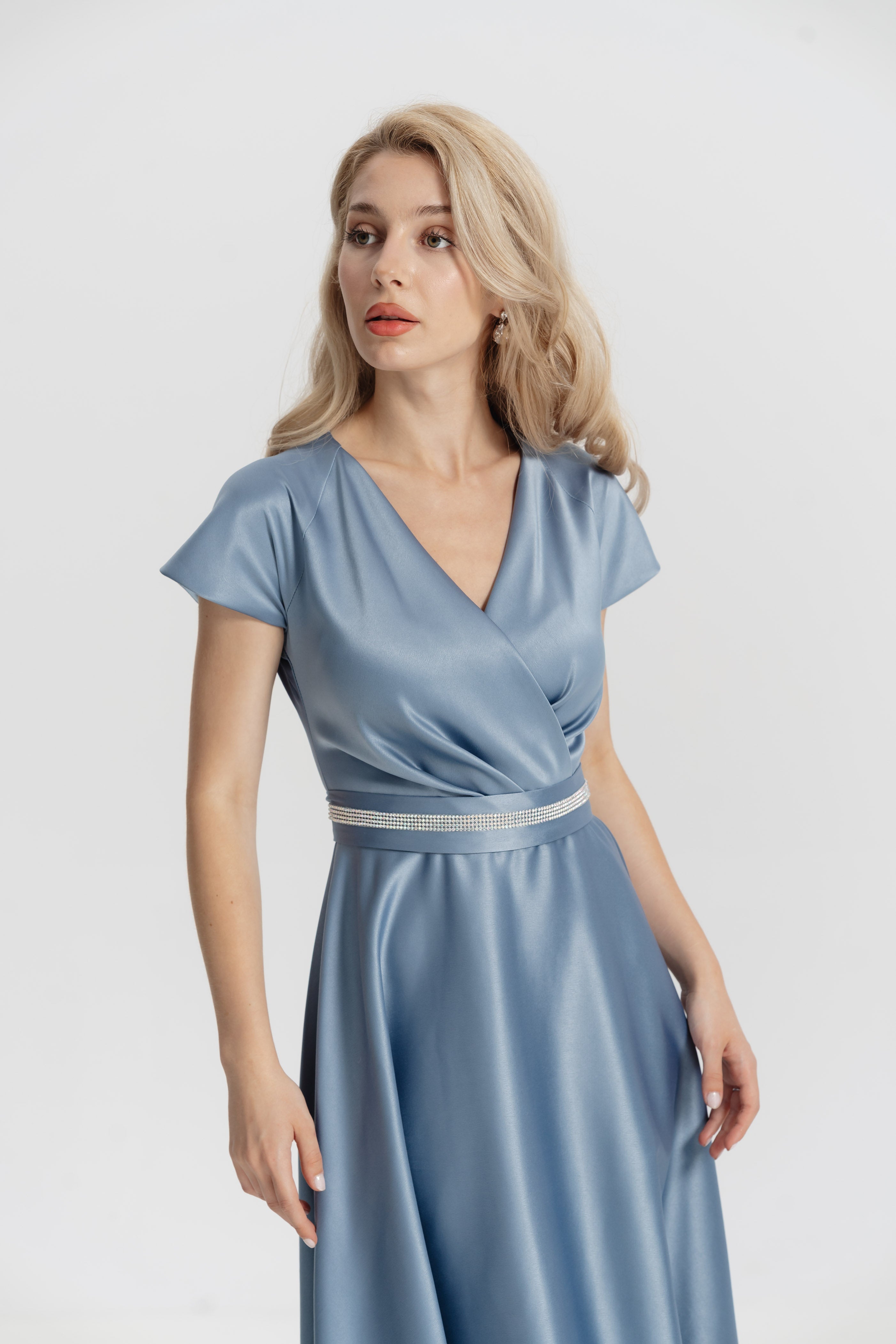 Aceasta rochie argintie este alegerea ideala pentru femeile care doresc sa iasa in evidenta cu un look elegant si rafinat. Fie ca participi la o nunta, un cocktail sau o gala, aceasta rochie te va ajuta sa te simti fabulos.