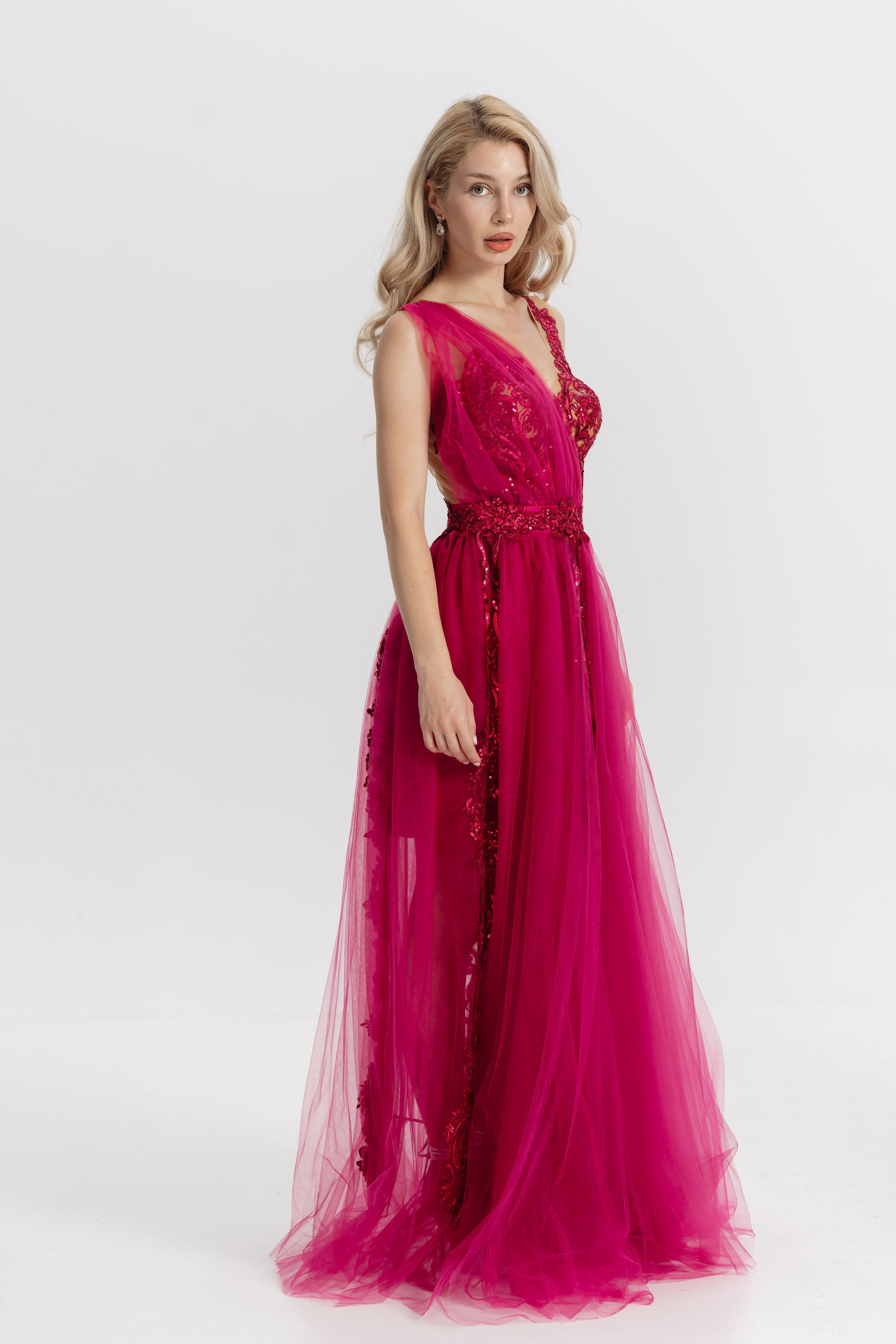 Alege aceasta rochie spectaculoasa fuchsia pentru evenimente la care vrei sa iesi in evidenta. Cu un design modern si stralucitor, este ideala pentru baluri, petreceri de gala sau nunti.