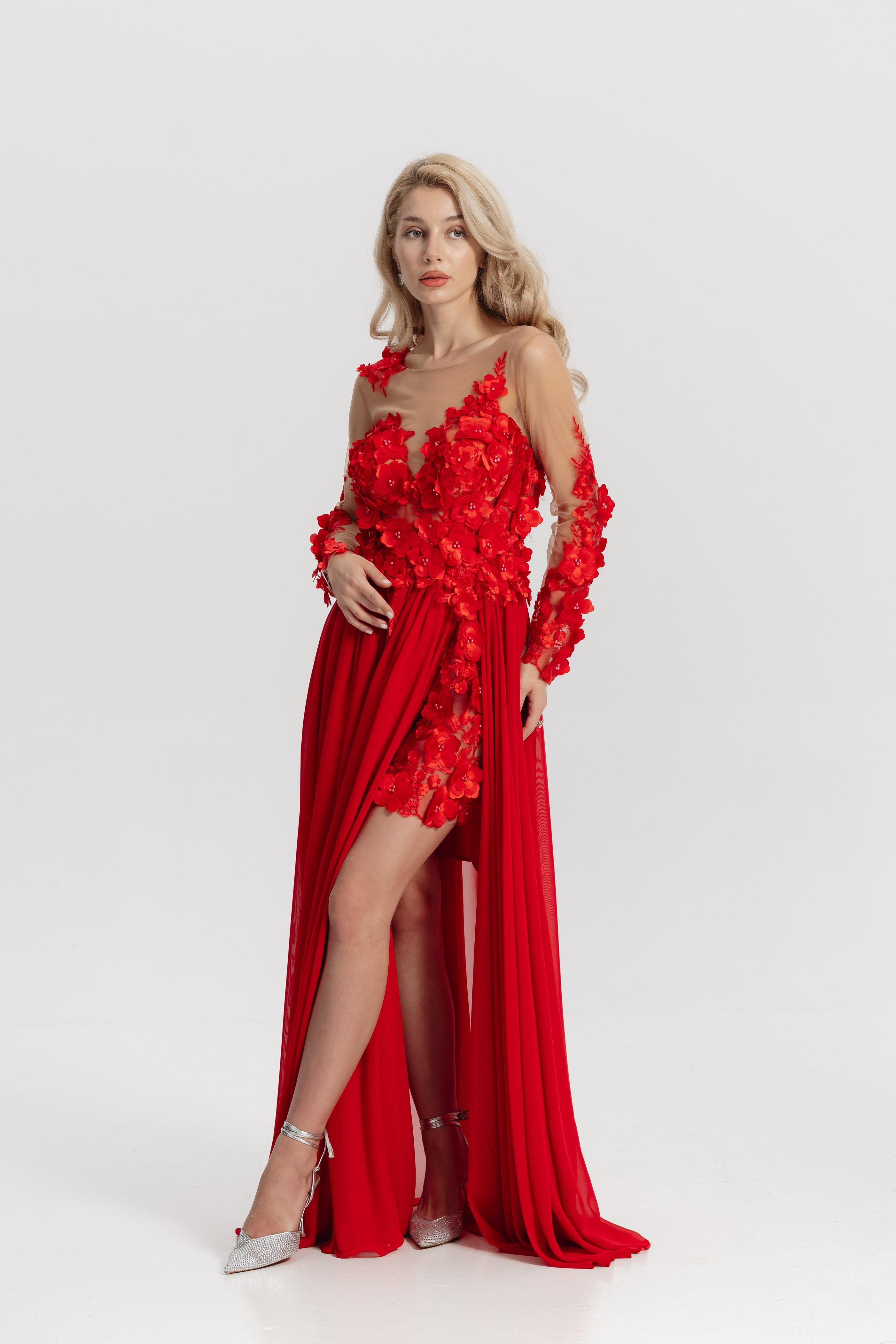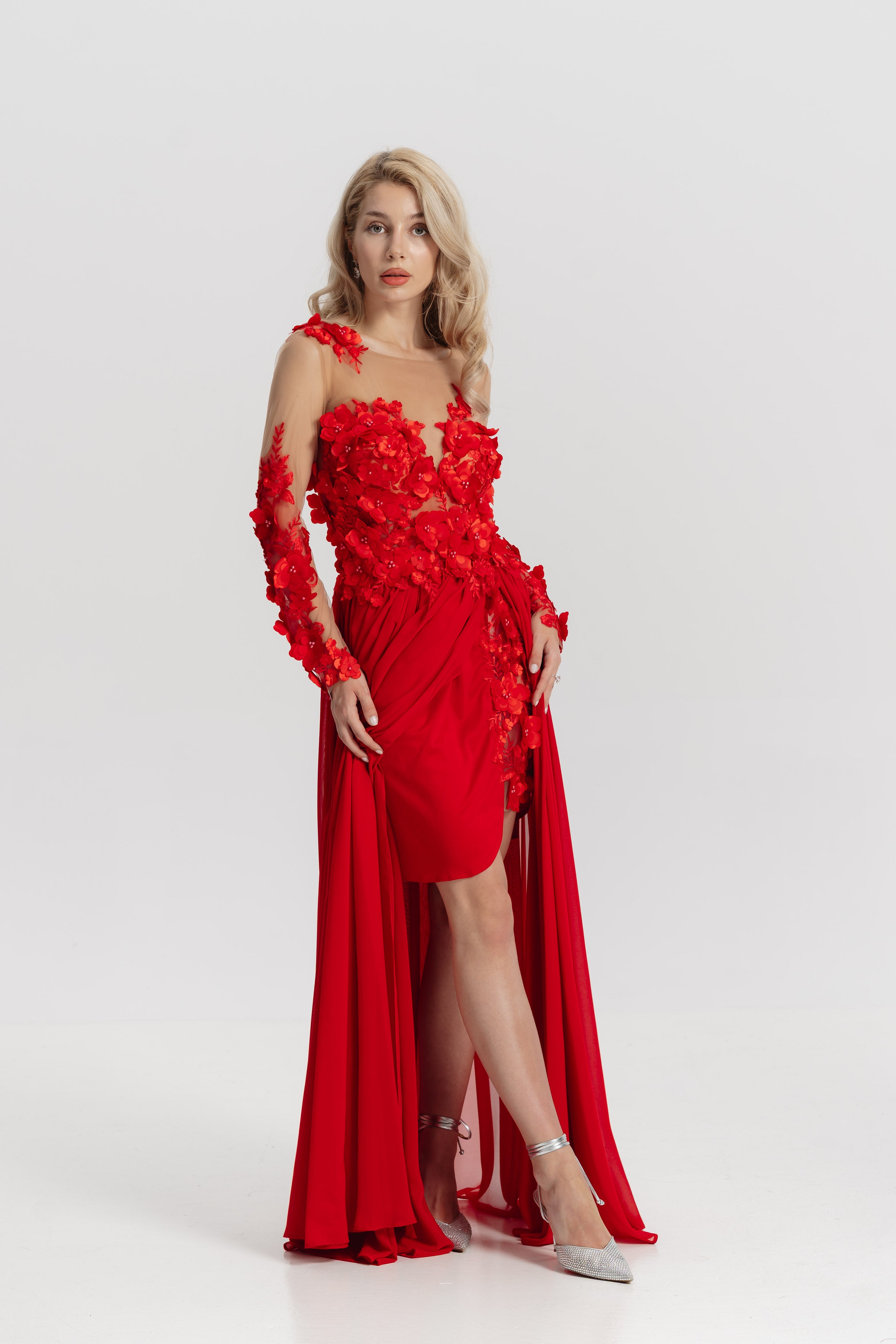 Imbraca-te cu incredere in aceasta rochie eleganta rosie, perfecta pentru evenimente deosebite precum nunti, petreceri sau gala. Aceasta rochie combina stilul indraznet cu un design sofisticat, fiind alegerea ideala pentru a atrage toate privirile.