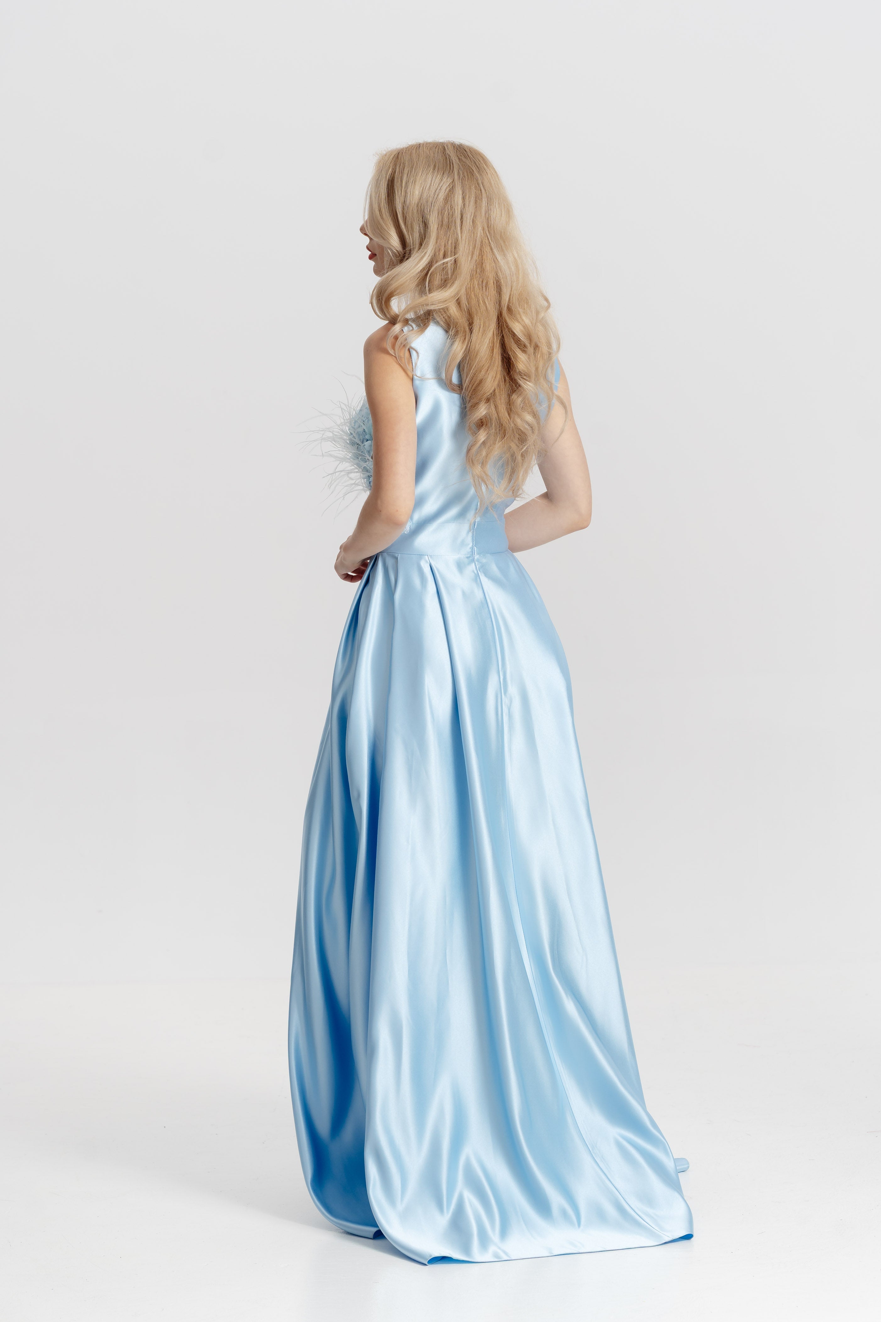 Aceasta rochie albastra deschis reprezinta alegerea perfecta pentru femeile care doresc sa iasa in evidenta cu un look feminin si sofisticat. Fie ca participi la o nunta, un cocktail sau o gala, aceasta rochie te va ajuta sa te simti minunat.