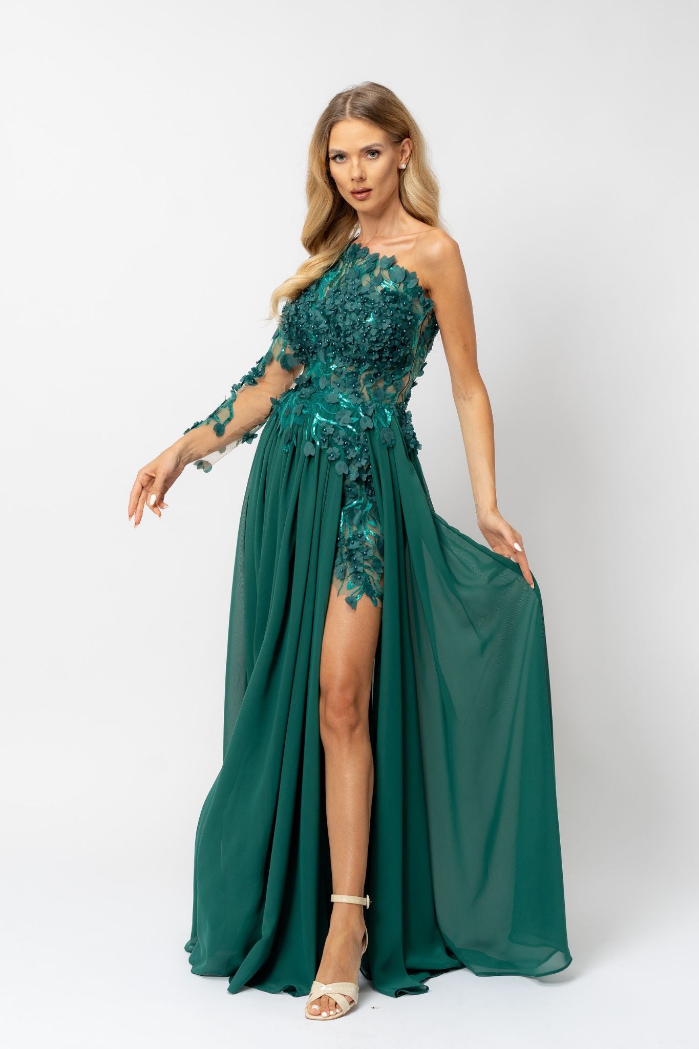 Aceasta rochie este ideala pentru evenimente speciale, nunti, banchete sau orice alta ocazie unde doriti sa straluciti.
