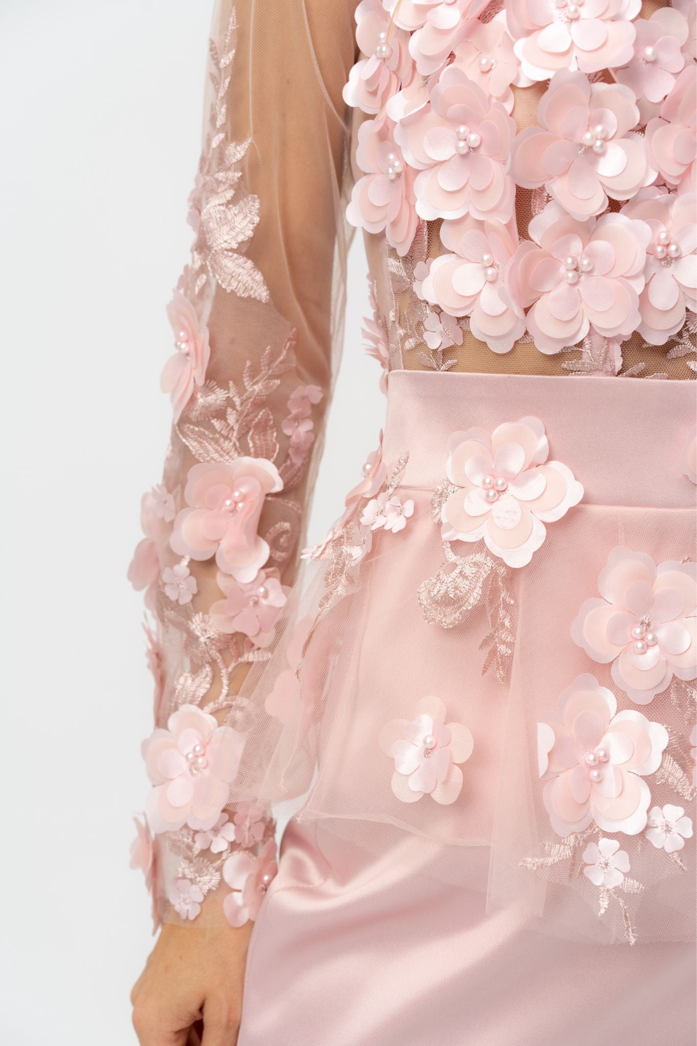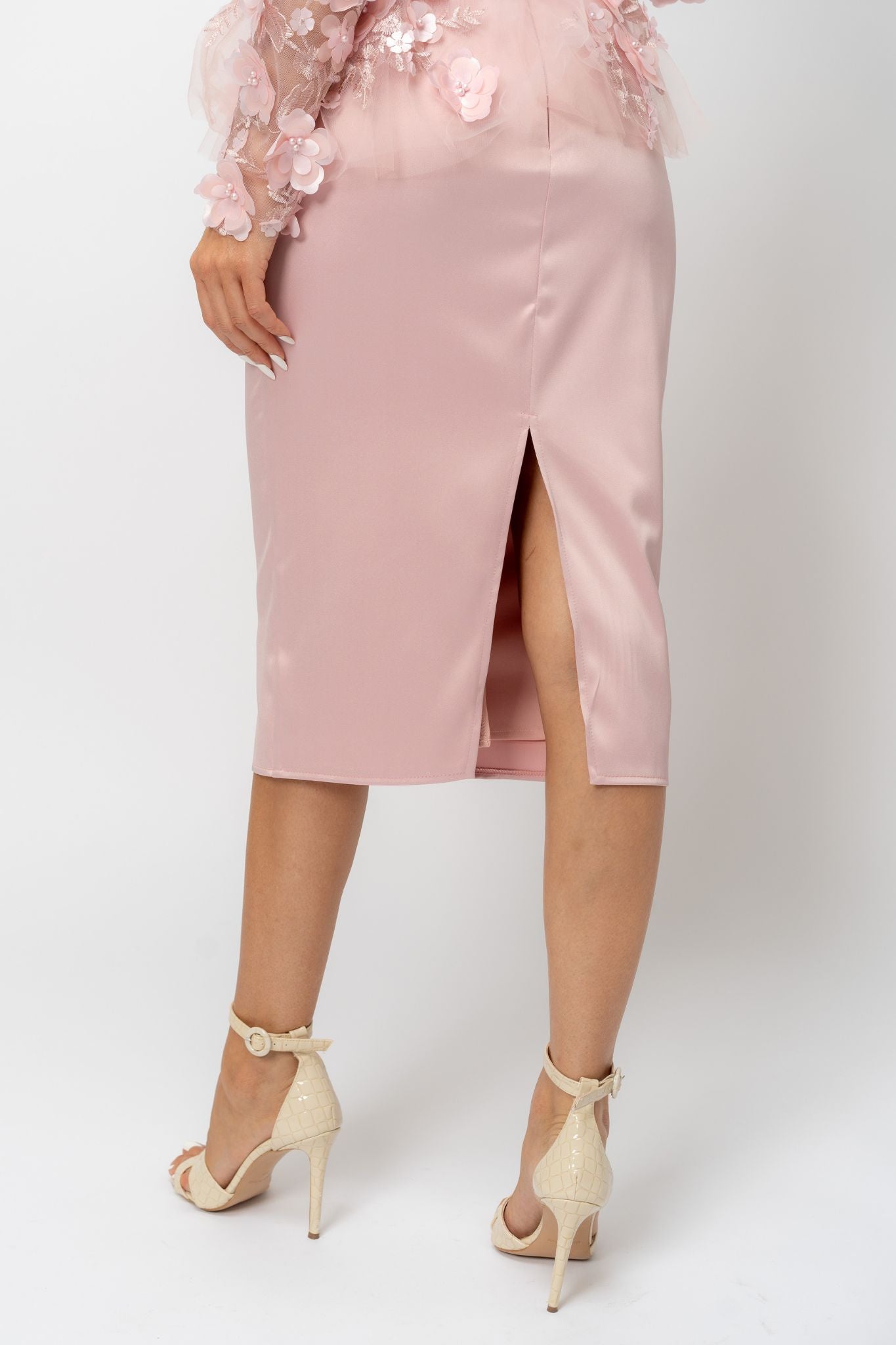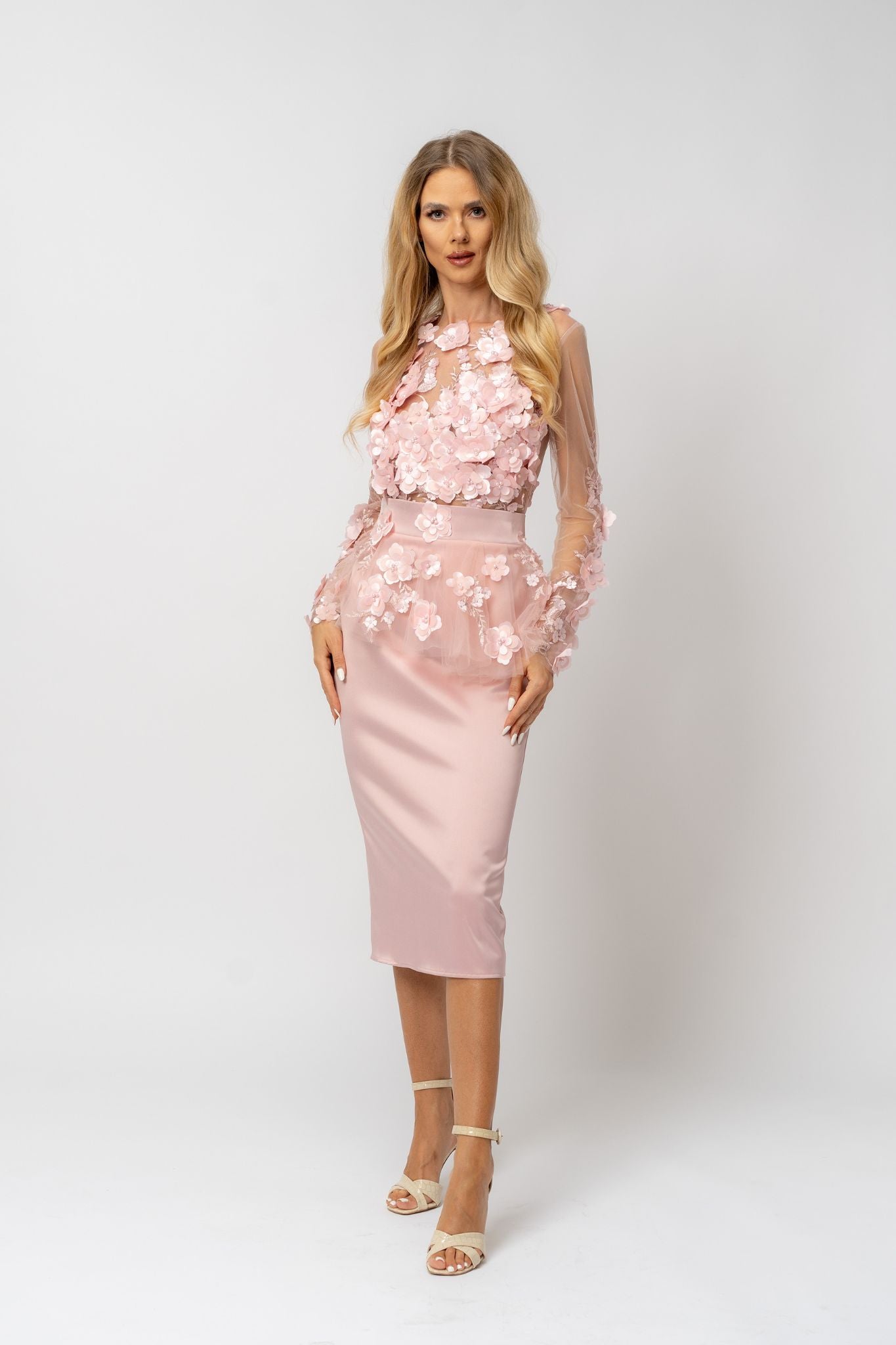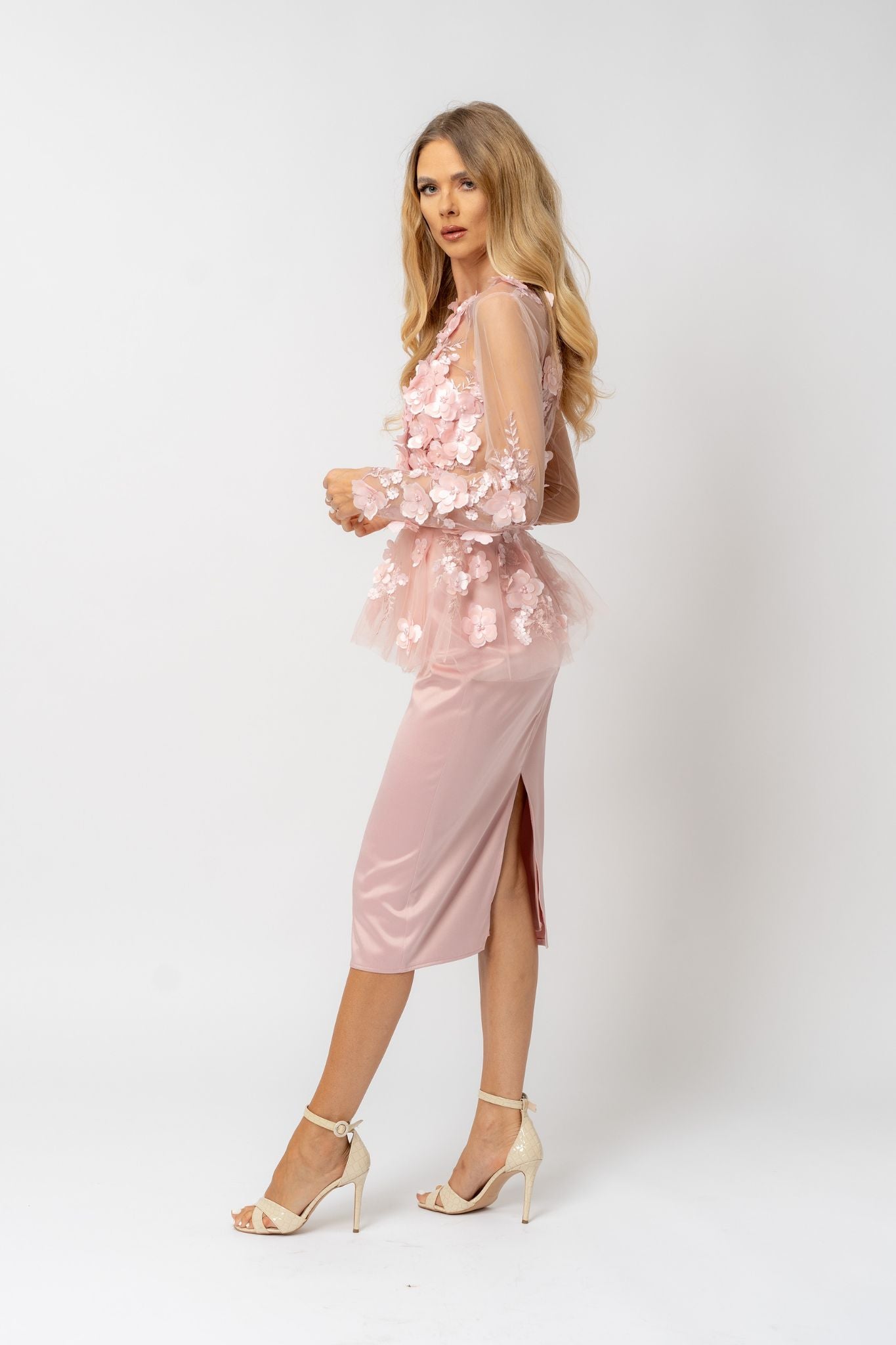 Fii stralucitoare la orice eveniment cu aceasta rochie midi de ocazie, perfecta pentru un look romantic si elegant. Partea superioara este decorata cu dantela 3D fin lucrata, oferind un efect rafinat si feminin, in timp ce fusta conica pune in valoarea silueta si subliniaza silueta