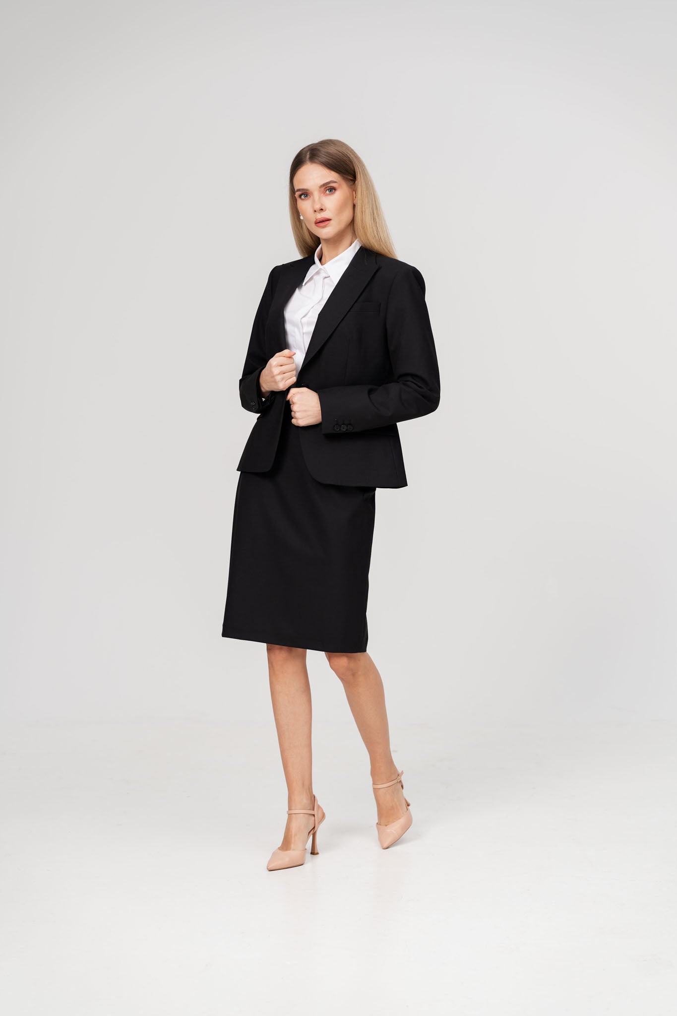 Opteaza pentru acest compleu care iti asigura un look impecabil, profesional si feminin in orice situatie!