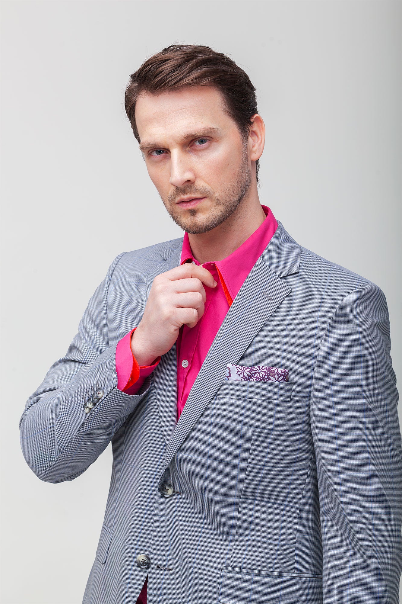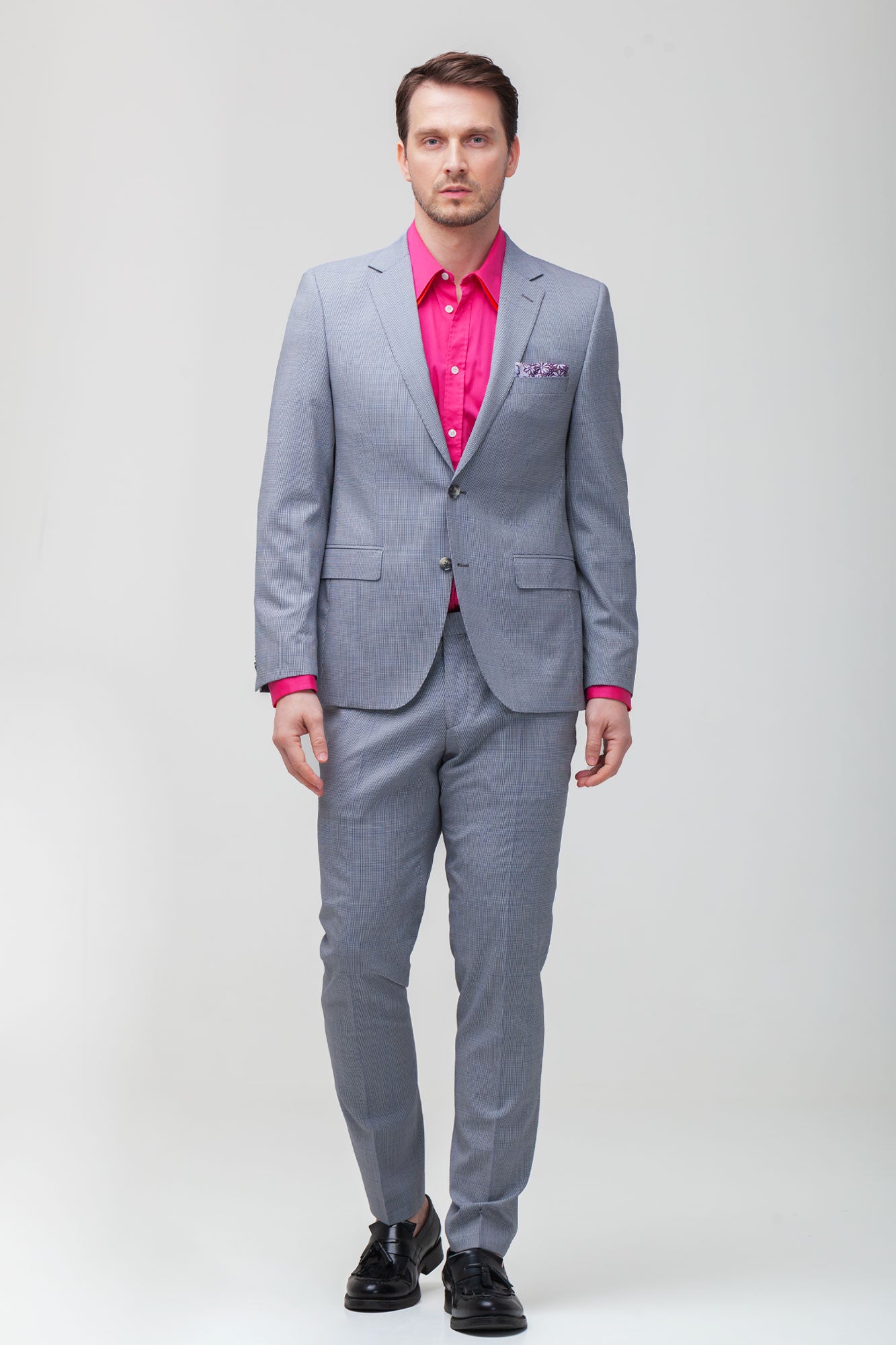 Alege sa te remarci cu acest costum gri slim, care nu doar ca iti va completa garderoba, dar iti va si evidentia personalitatea. Bucura-te de un look impecabil!
