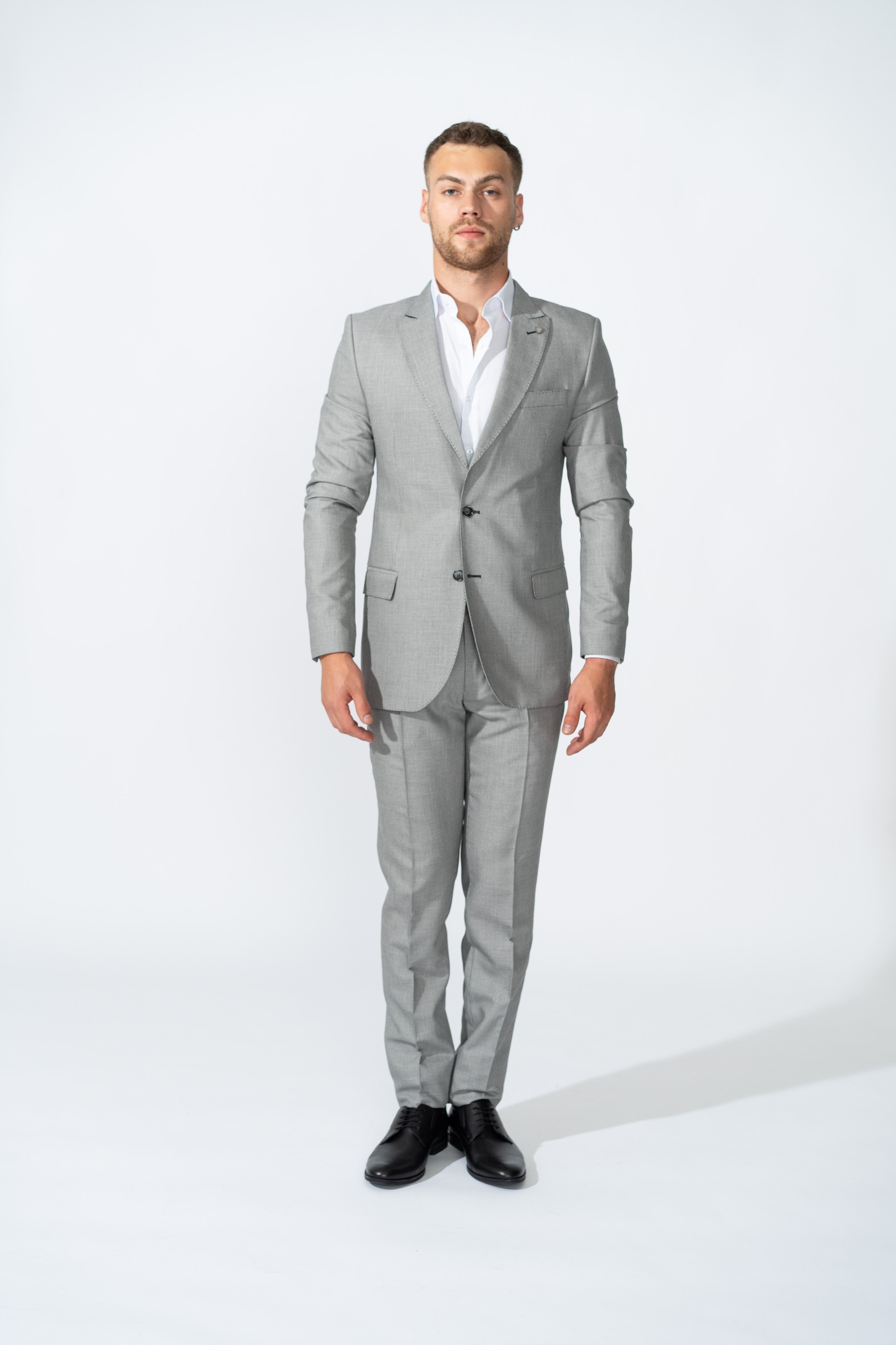 Descopera eleganta costumului gri slim – potrivit pentru orice ocazie formala sau semi-formala. Fabricat dintr-un material de buna calitate, acest costum ofera confort de lunga durata, ideal pentru ore intregi de purtare. Costumul gri este ideal pentru intalniri de afaceri, nunti sau evenimente speciale, fiind usor de asortat cu diverse camasi si cravate. Detaliile de finisare, cum ar fi nasturii eleganti si captuseala interioara adauga un plus de stil si distinctie.